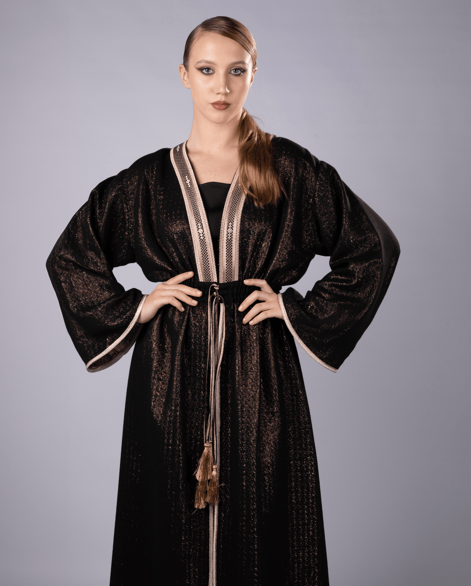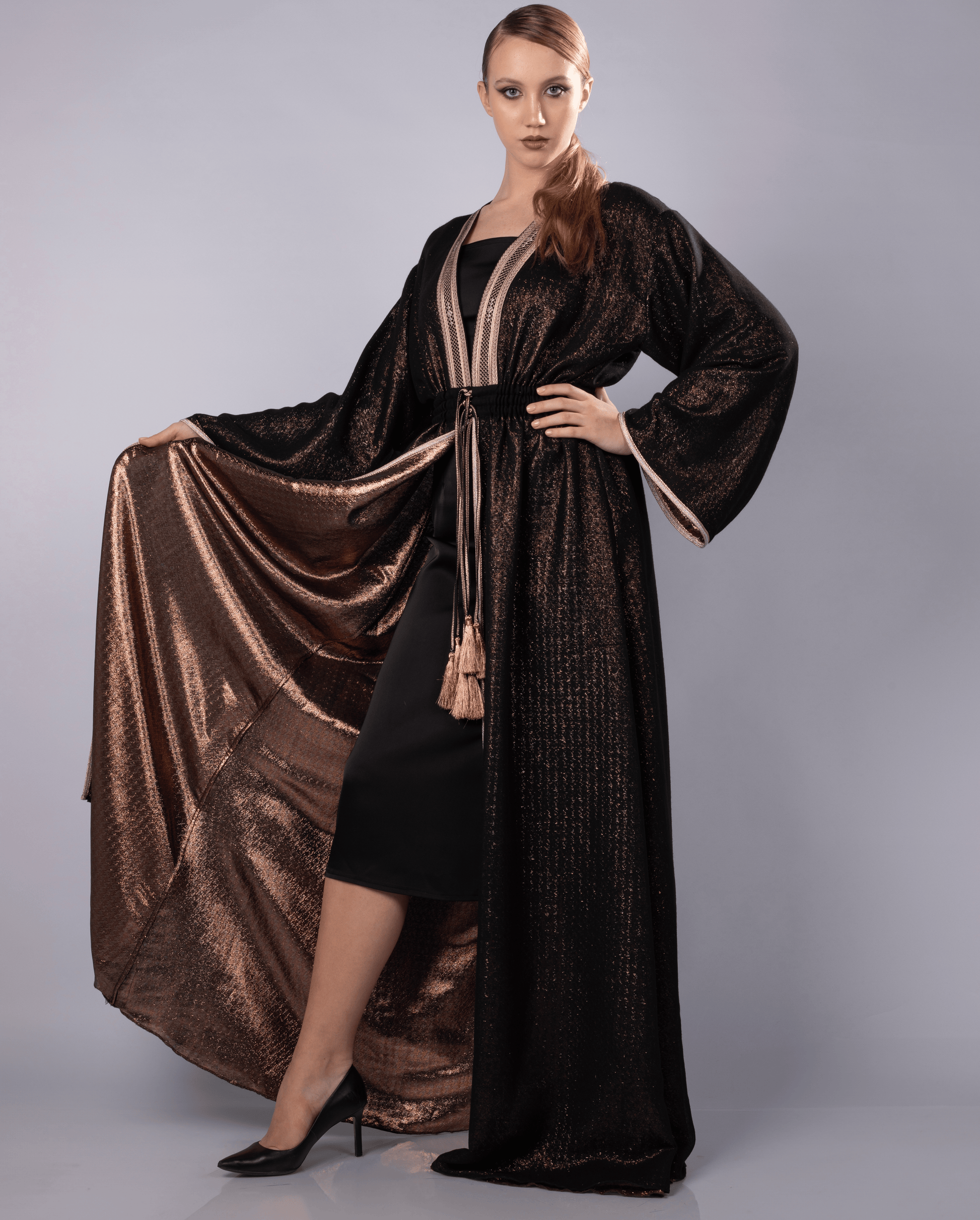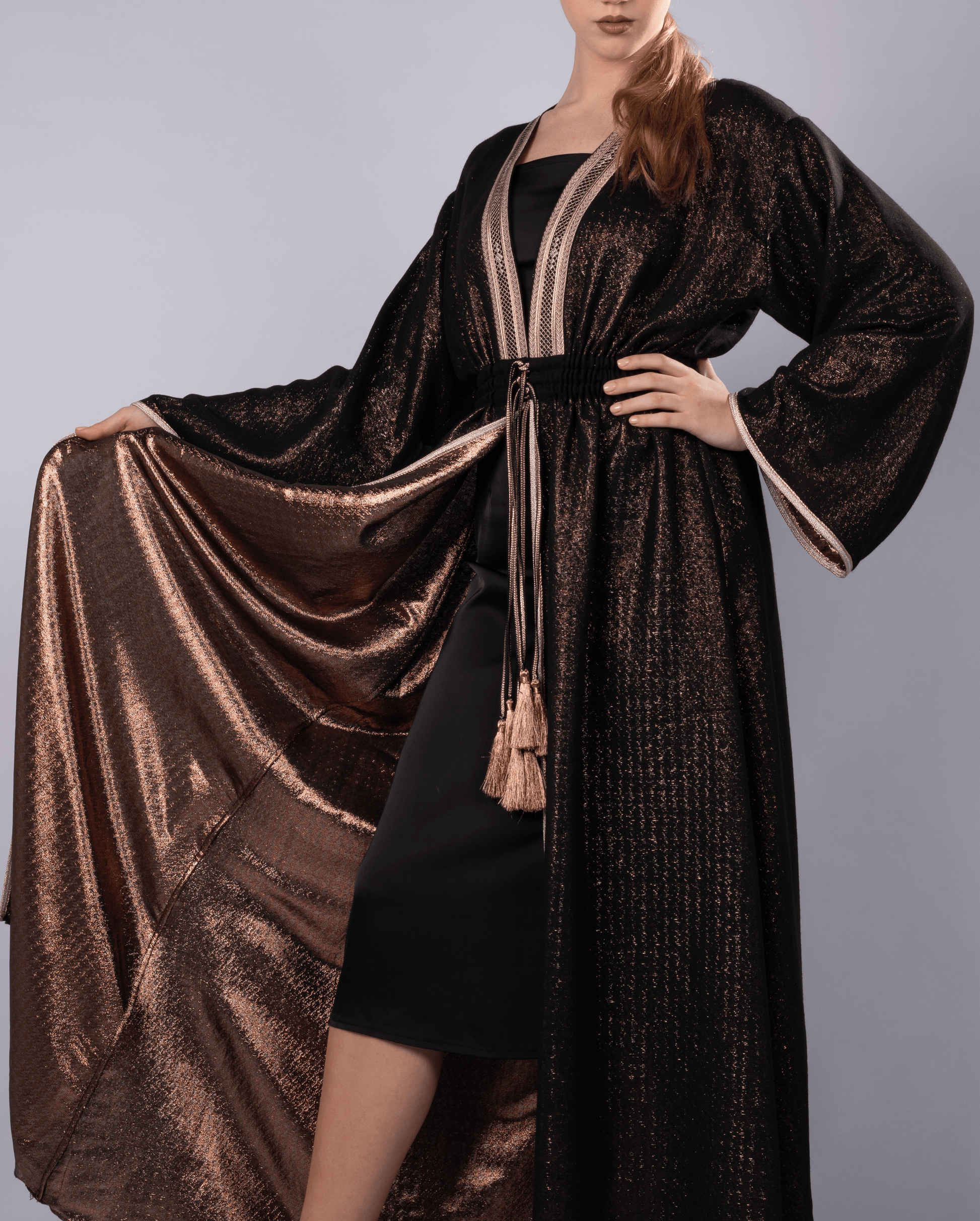 Materials: Linen for the outer fabric, metallic material for the lining.