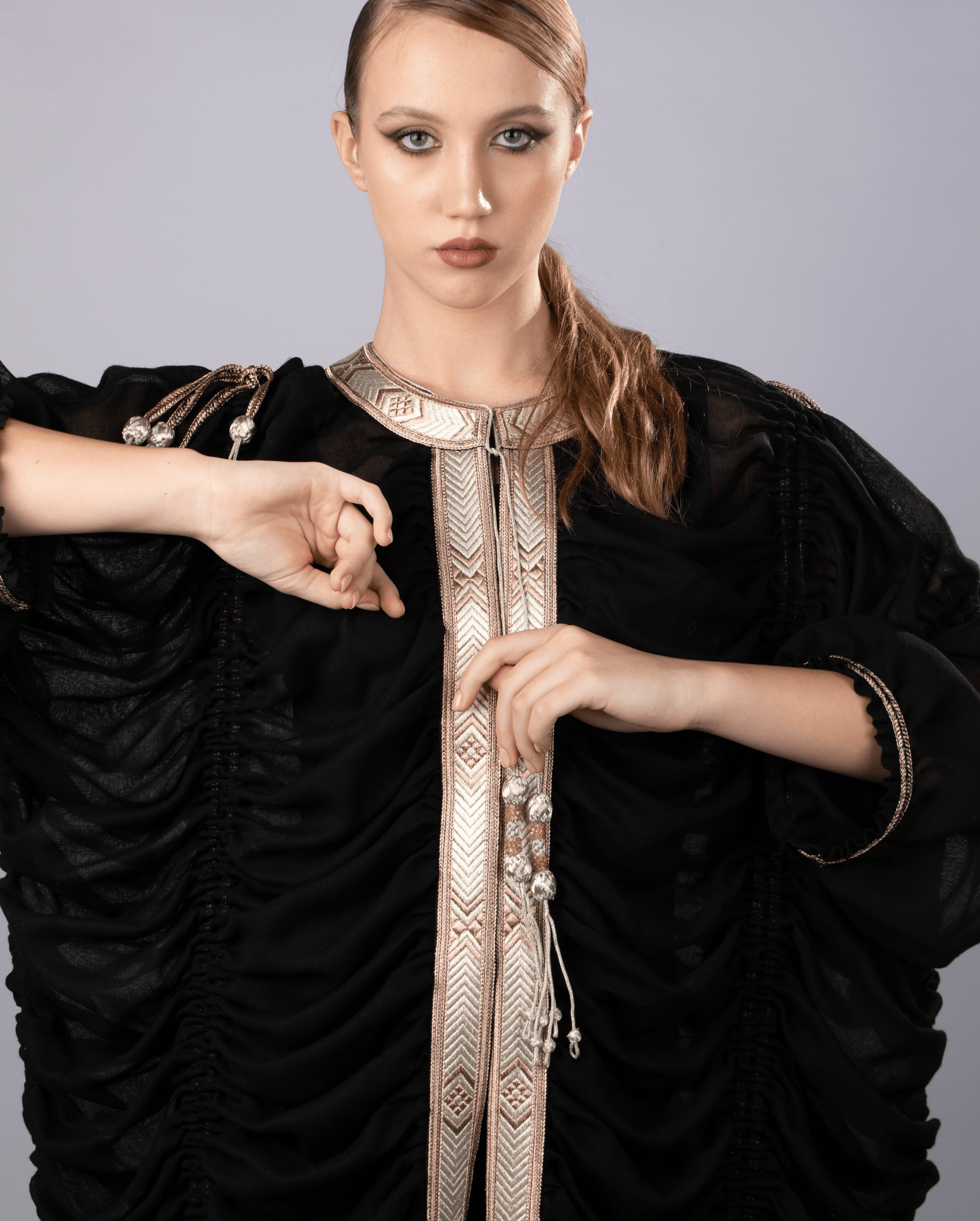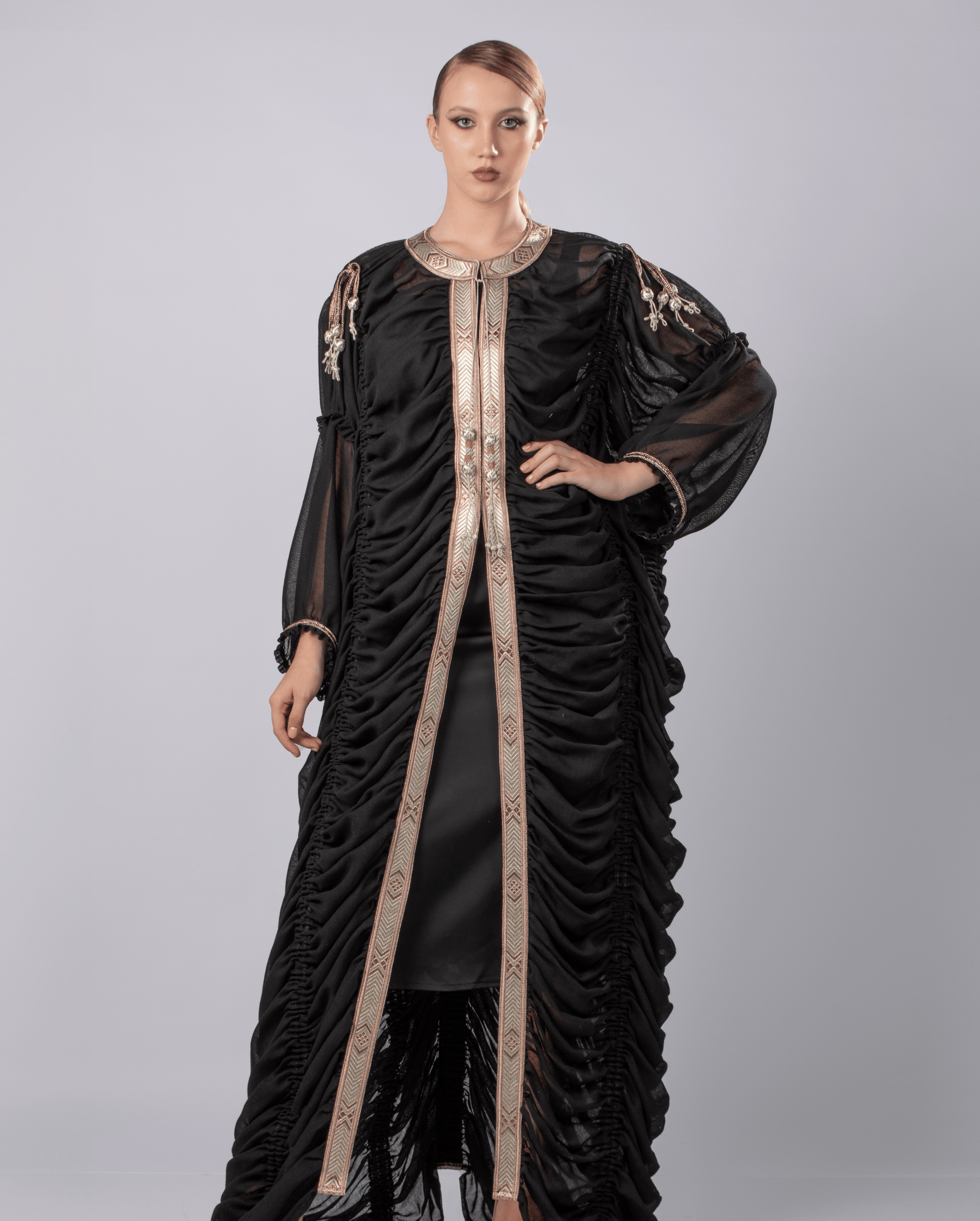 design. The garment is likely made from a flowing fabric that allows for ample